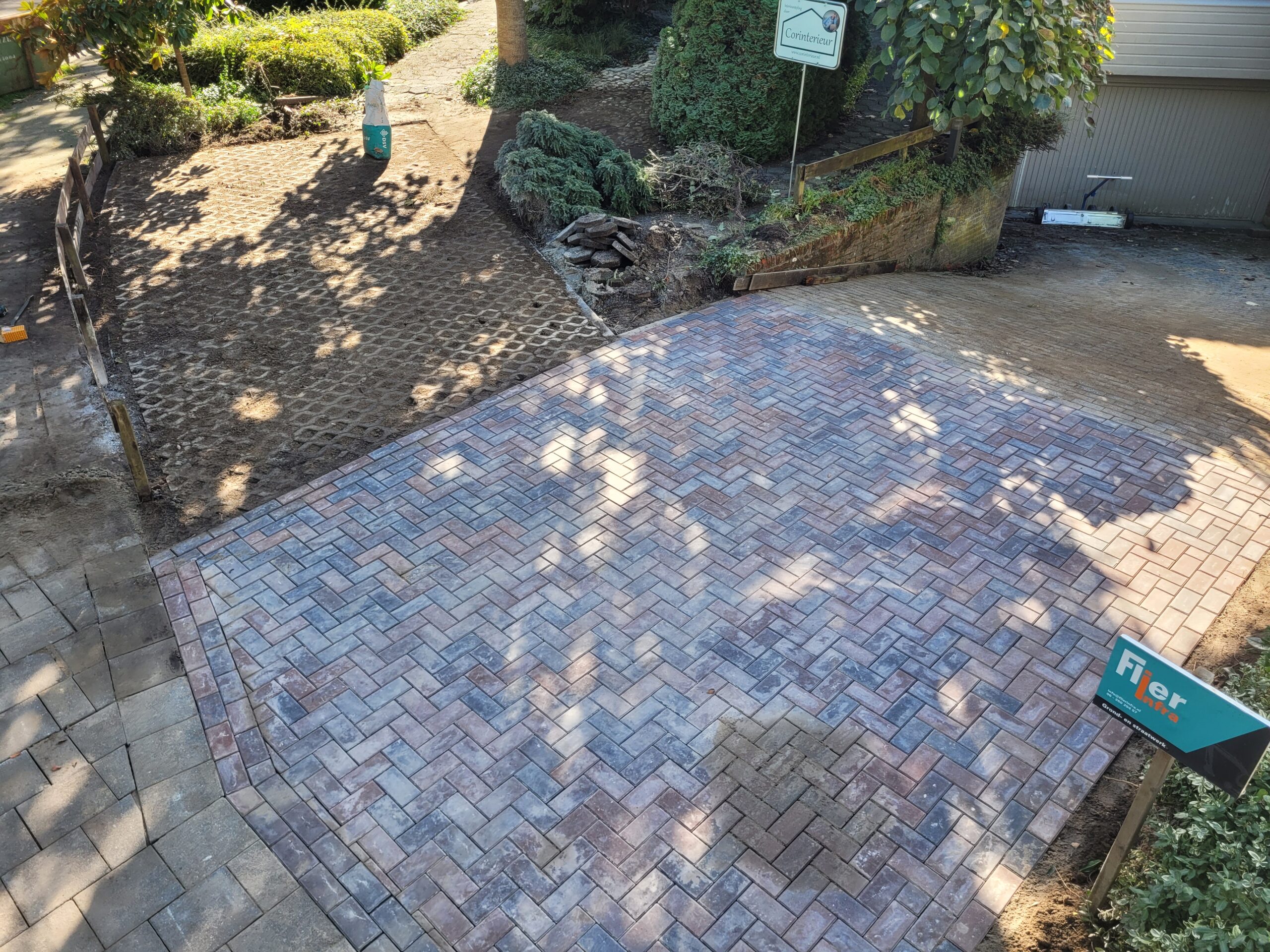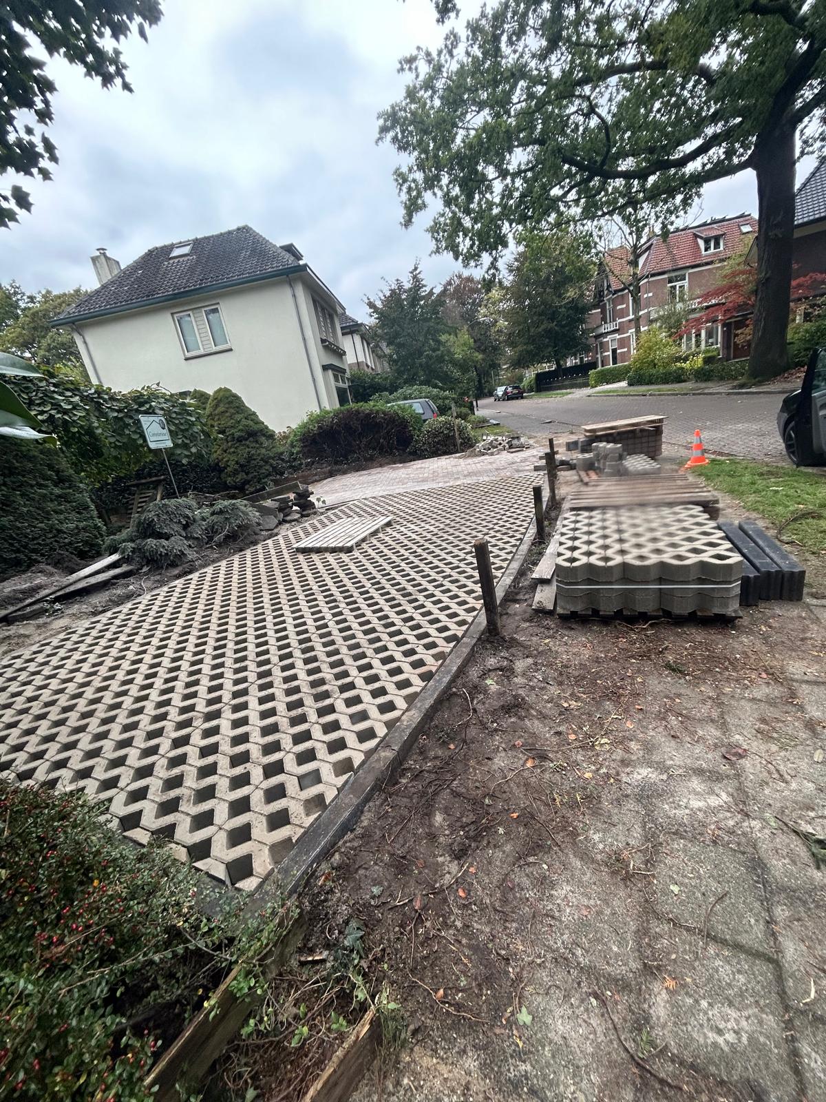 Een mooi project in het hartje van Apeldoorn. We hebben de bestaande oprit vernieuwd met nieuwe klinkers. Ook hebben wij een extra parkeerplek toegevoegd met grasbetontegels, voor de natuurlijke look.